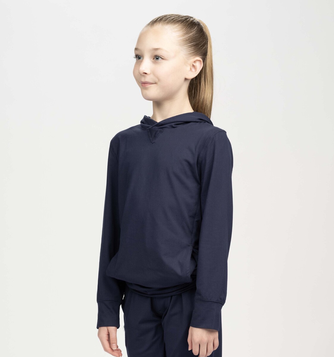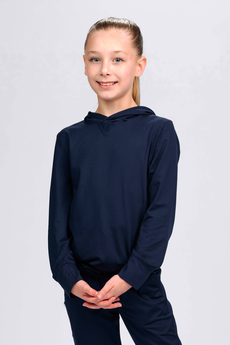 Chill easy in the Youth Lightweight Soft Knit Hoodie — ultra‑soft rayon blend and scuba hood feel like a hug. Perfect for cool‑down stretches, study halls, and pastel logo prints.