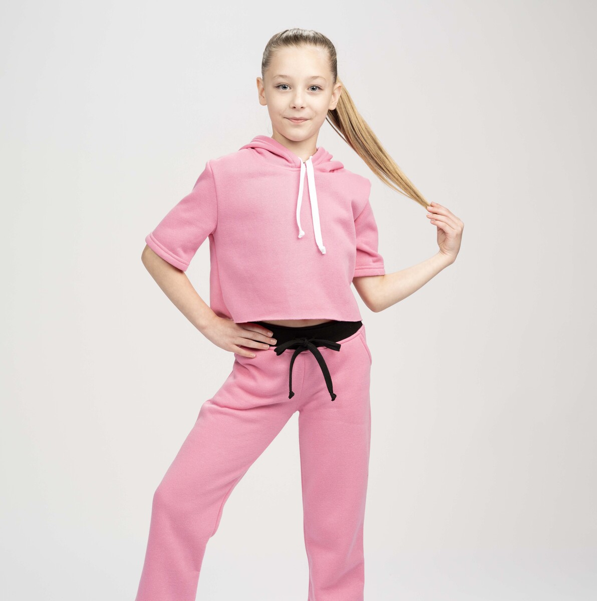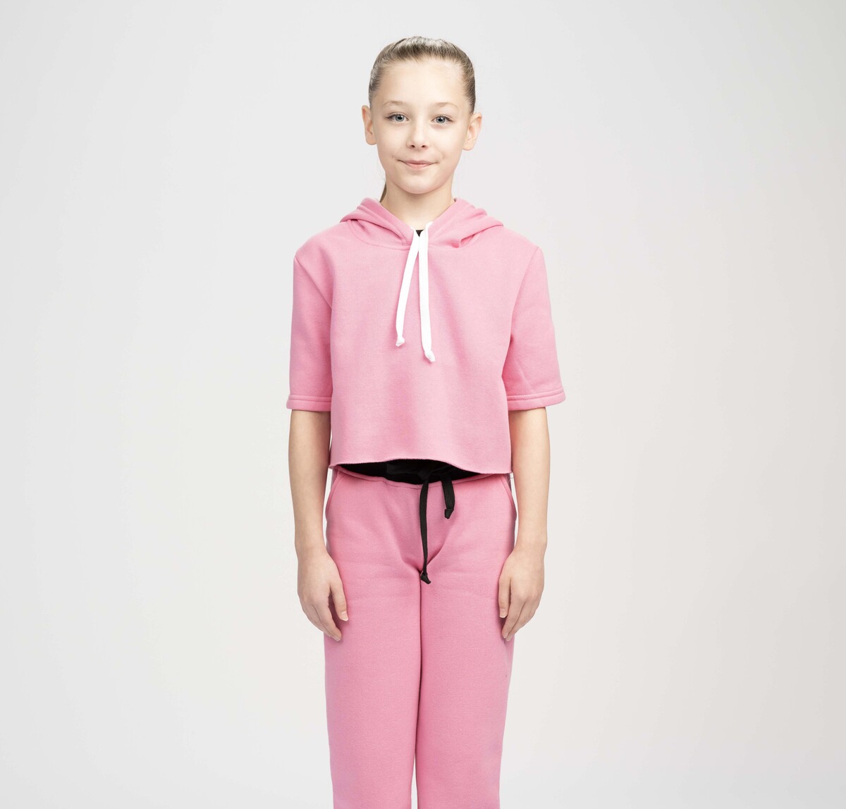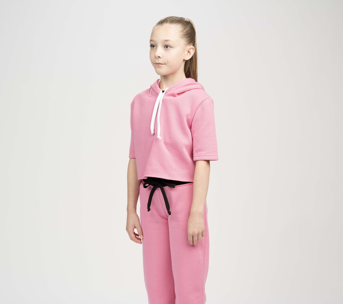 Turn heads in the Girls Short Sleeve Crop Hoodie — cropped raw hem meets short sleeves for instant TikTok appeal. Perfect for hip‑hop practice, school spirit days, and neon studio art.