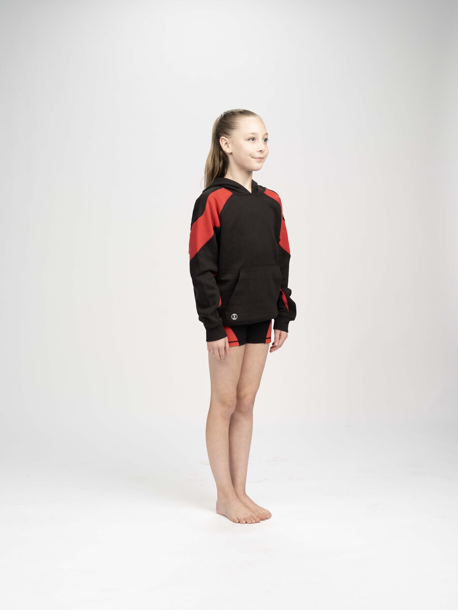 Stay sporty in the Youth Prospect Hoodie — raglan fleece with contrast inserts and piping for pro‑team style. Perfect for warm‑ups, bus rides, and mascot‑size logos.