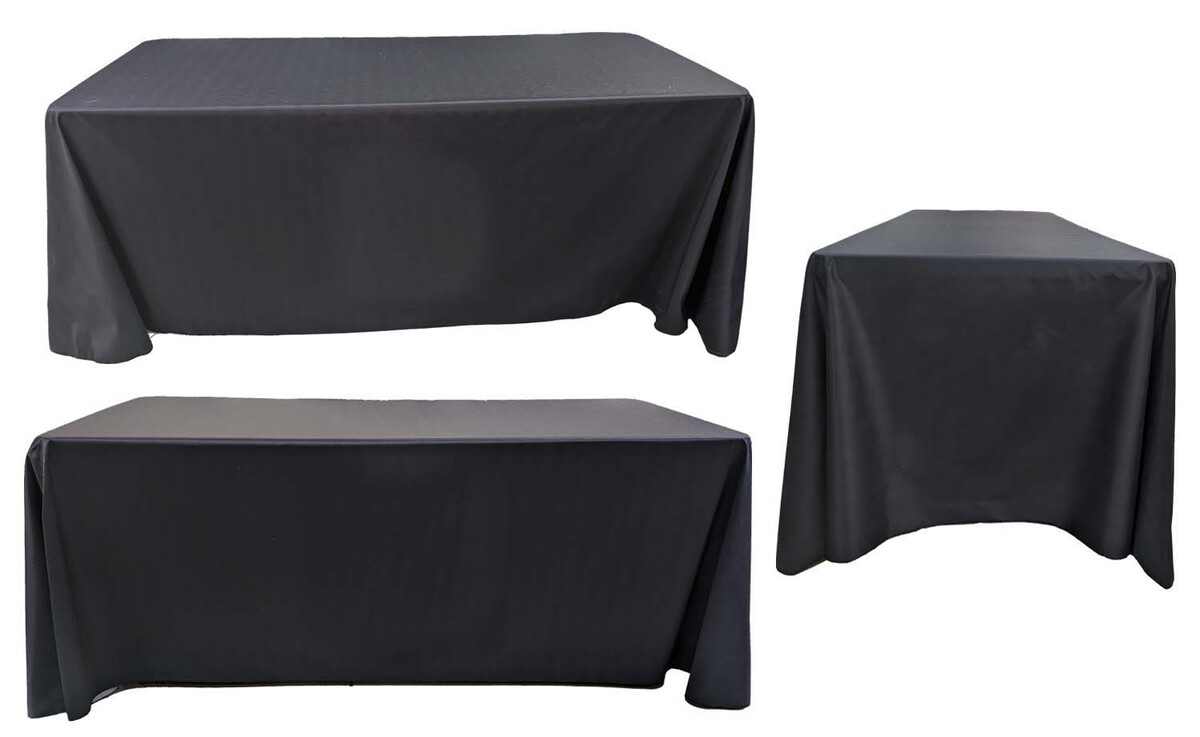 Full-Out Premium Table Cloth - 6' table, Drape style, 4 sided, Closed Back, Rounded Corners