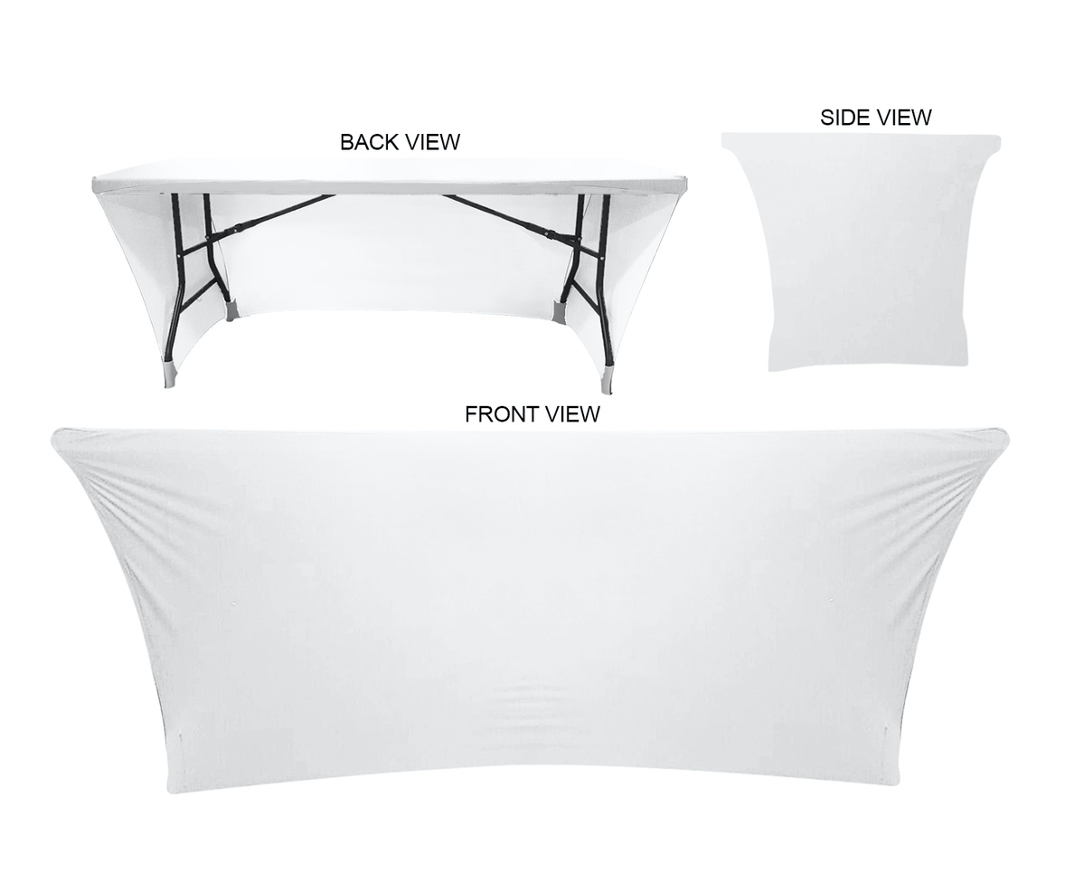 Full-Out Stretch Curved Fit Table Throw - 8ft table, 3 sided, Open Back