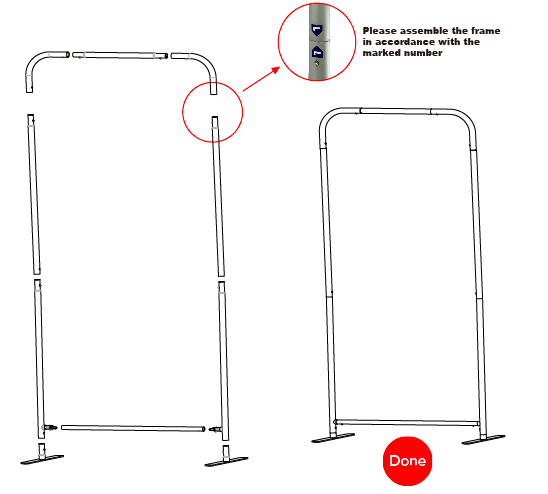 • Double sided graphics are viewable from both the front and back of the display. Graphics are printed on a premium polyester fabric. Wall cover slips over the frame like a pillowcase. Fabric contours to the frame for a form-fitted look. Hardware - Poles are labelled for easy assembly. Push-button connectors make assembly a snap. Slim swivel feet allow EuroFit Walls to be paired at angles. Includes padded carry case, 600 D polyester.