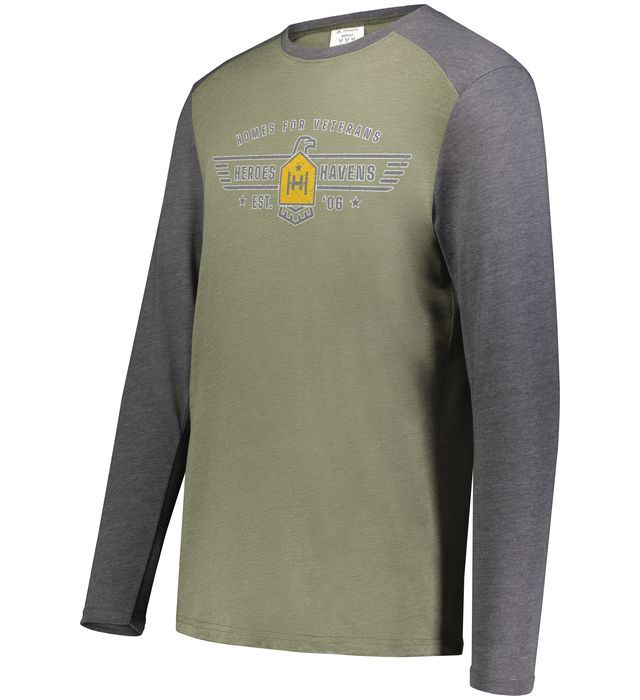 * 3.8 ounce, tri-blend jersey * 50% polyester/38% cotton/12% rayon * Garment protects against the sun with 15+ UPF * Tear away label * Crew neck * Set-in sleeves with shoulder insert