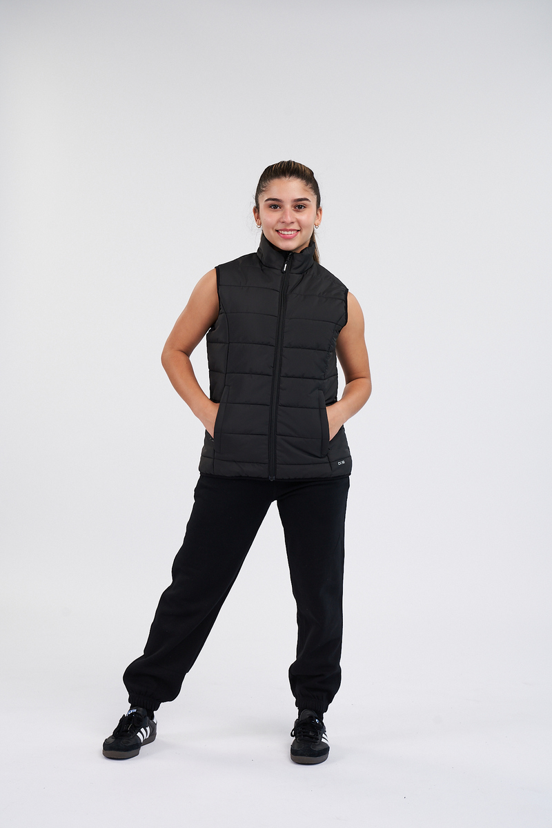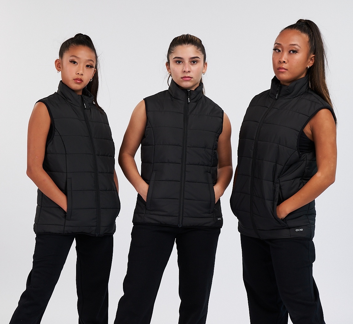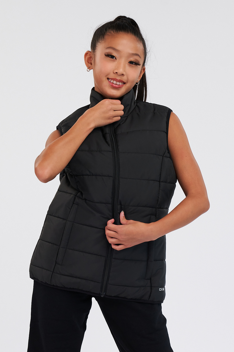 Bundle up in the Studio Youth Puffy Vest — a hip‑length, quilted layer that keeps young dancers cozy without bulk. Perfect for warm‑ups, outdoor awards, and repping your studio between classes.