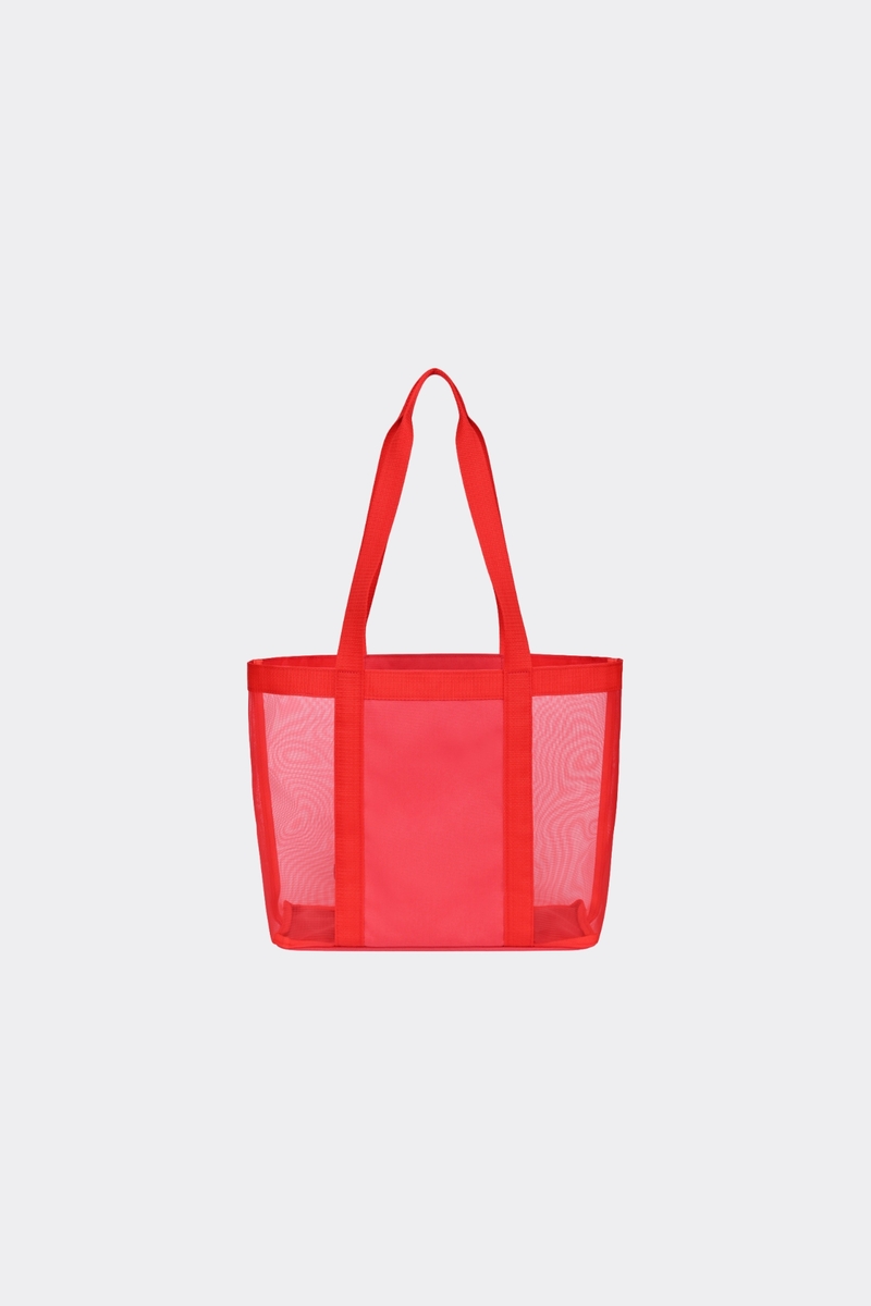 • Mesh tote bag with two top handles and webbing detail