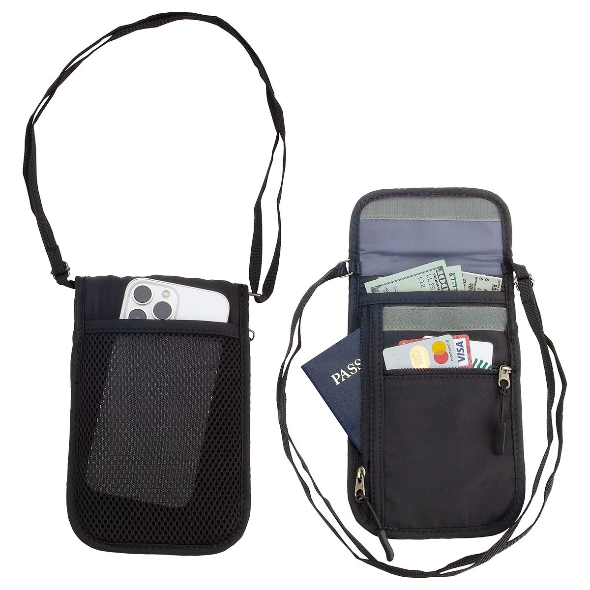 • 5-Pocket safety neck wallet lets you keep all those important things safe and handy