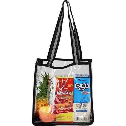 • Clear tote is trimmed with durable woven canvas for a contemporary look