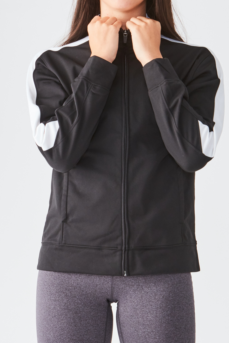 Win in style with the Ladies Medalist Jacket 2.0 — slim tricot body and bold side stripes celebrate every podium. Perfect for award walks, travel shots, and oversized back logos.