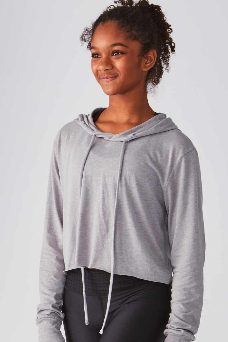 Studio Essentials Ladies Lightweight Raw-Edge Crop Hoodie - Studio Love